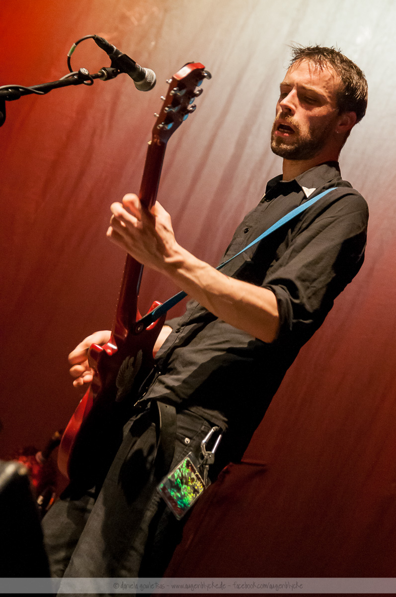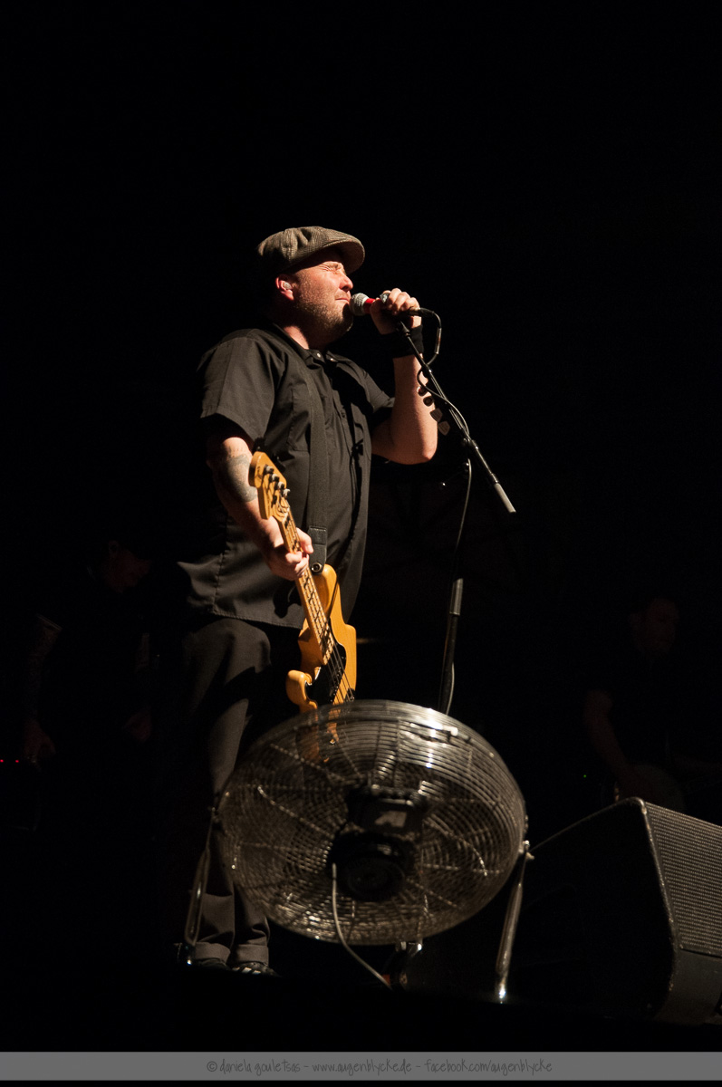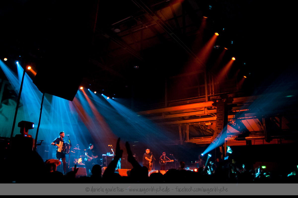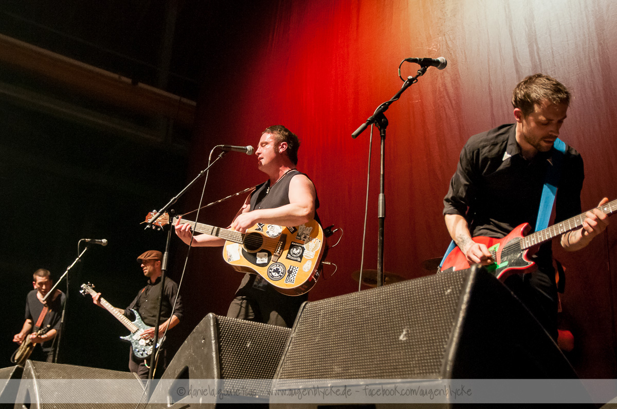 Bei dieser irischen Folk-Punk-Band ging schon eher was ab auf der Bühne. Sehr lustig anzusehen und sehr ansteckend. Vor allem Sänger und Frontmann Dugs Mulhooly rannte wie ein Wiesel über die große Bühne, machte Luftsprünge und animierte das Publikum (mehr oder weniger erfolgreich) zu mehr Aktivität. Zumindest die Band hatte richtig Spaß!