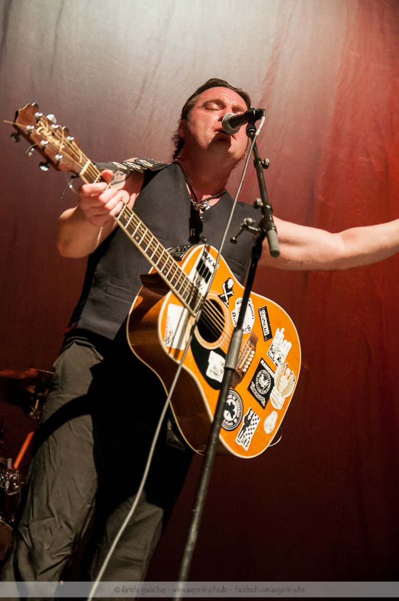 Der Singersongwriter aus Boston/USA kam alleine mit seiner Gitarre und wirkte dabei ziemlich verloren auf der großen Bühne. Und seine Musik, die eher in einen gemütlichen IrishPub passt, war viel zu langsam für ein vorgeglühtes Folk-Punk-Publikum.